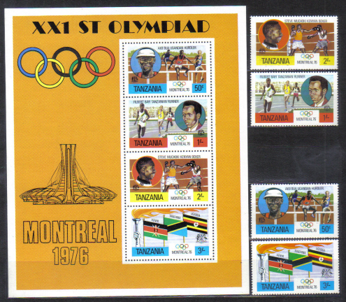 Tanzania čista kompletna seria + aršik - letna olympiada 1976.