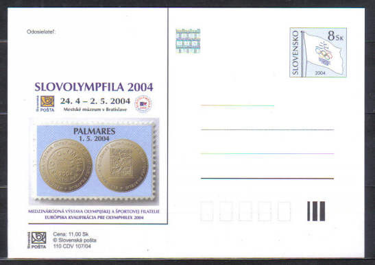 Slovensko čisty korešpondenčny listok - Slovolympfila - palmare 2004.