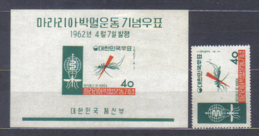 Južna Korea čista znamka + aršik - boj proti malarii 1962.
