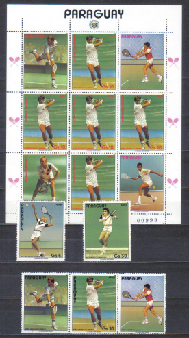 Paraguay čista kompletna seria + tlačovy list - tenisti 1986.