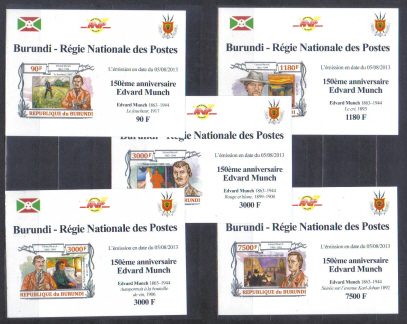 Burundi čista kompletna seria nezubkovanych aršikov - malby Munch 2013.
