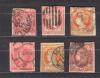 Španielsko 6 razenych znamok z obdobia 1854-1864 , kvalita zubkovania vid sken .