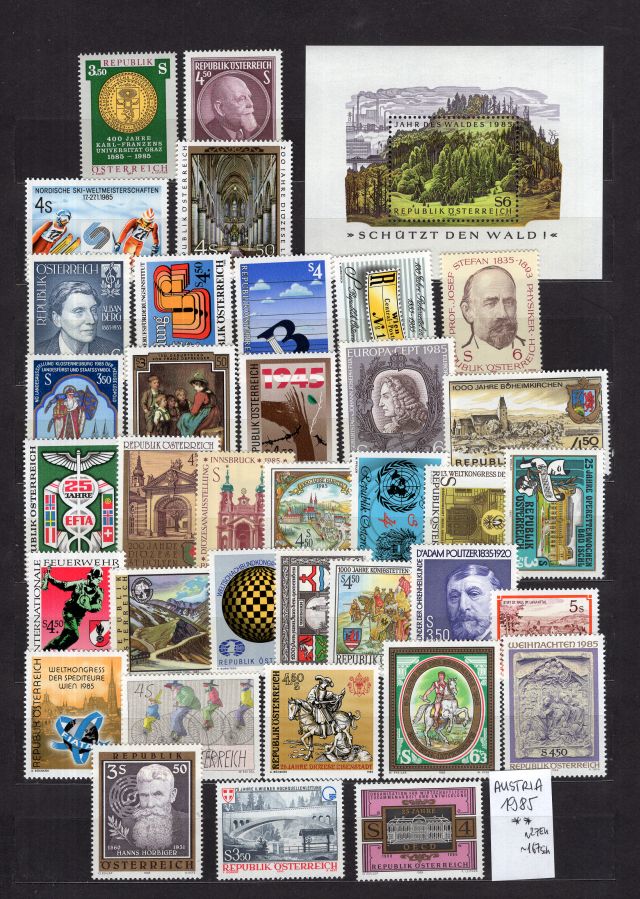 Rakusko čiste znamky a serie - kompletny ročnik 1985.