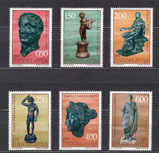 Juhoslavia  čista kompletna seria -  anticke sochy    1971.