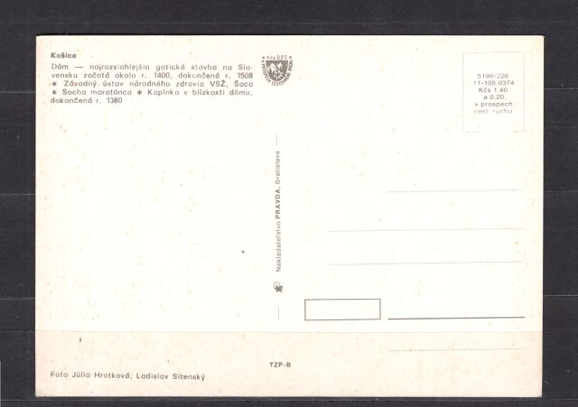 | Slovensko fotka Košice dom kaplnka socha maratonca nepoužita | ID aukcie: 88031 |