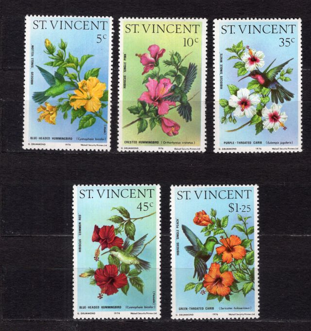 St Vincent čista kompletna seria - kolibriky a kvety 1976.