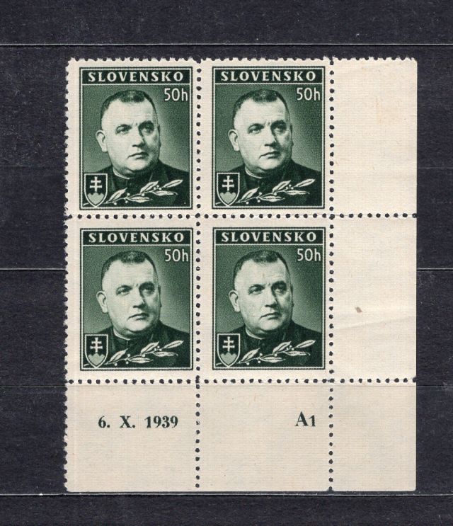 Slovensky štat čista znamka v rohovom 4bloku a DZ S1 1939 - Tiso 1939.
